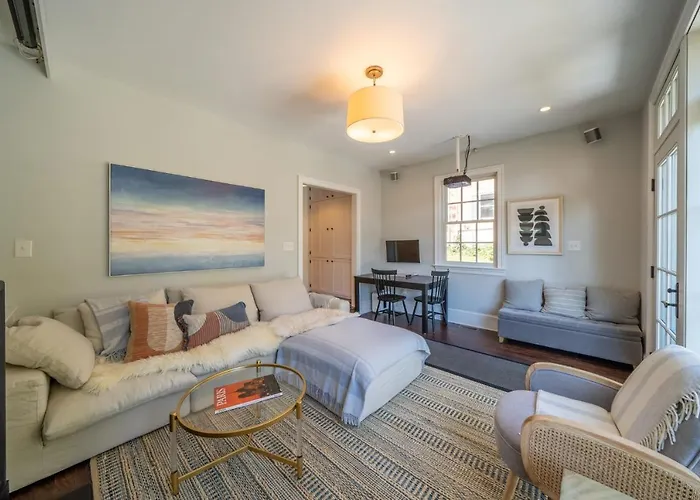 Walton House, una villa histórica con tres dormitorios y dos baños y medio, te ofrece una experiencia inigualable en Kennett Square. Su ambiente acogedor, equipado con aire acondicionado y conexión WiFi gratuita, proporciona el refugio perfecto tras un día de exploración. A tan solo 11 km, encontrarás el fascinante Delaware Museum of Natural History, ideal para disfrutar en familia y aprender sobre la flora y fauna de la región. Además, el famoso Old Dutch House se localiza a 27 km, ofreciendo una combinación de historia y belleza. Los dormitorios de Walton House garantizan una buena noche de sueño, con espacios bien iluminados y decorados con un estilo que une lo clásico y lo contemporáneo. Cada habitación cuenta con toallas disponibles, asegurando tu comodidad al instante. La villa también dispone de un patio encantador donde puedes relajarte y disfrutar del aire fresco mientras saboreas un café.